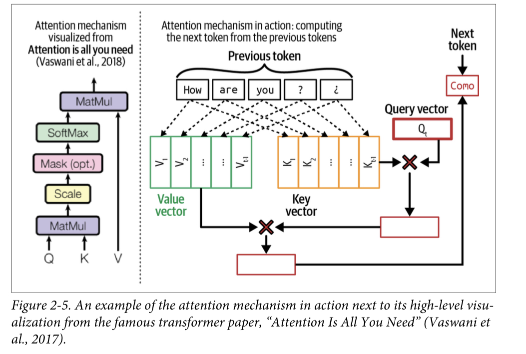 Attention mechanism computes how much attention to give an input token by performing a dot product between the query vector and its key vector. A high score means that the model will use more of that page’s content (its value vector) when generating the book’s summary