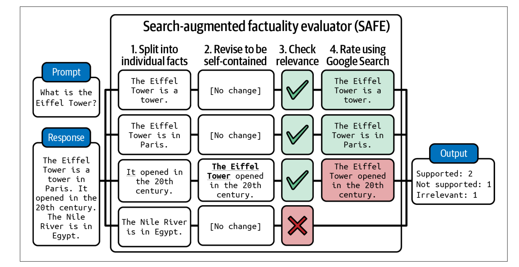 - Knowledge-augmented verification:SAFE, Search-Augmented Factuality Evaluator