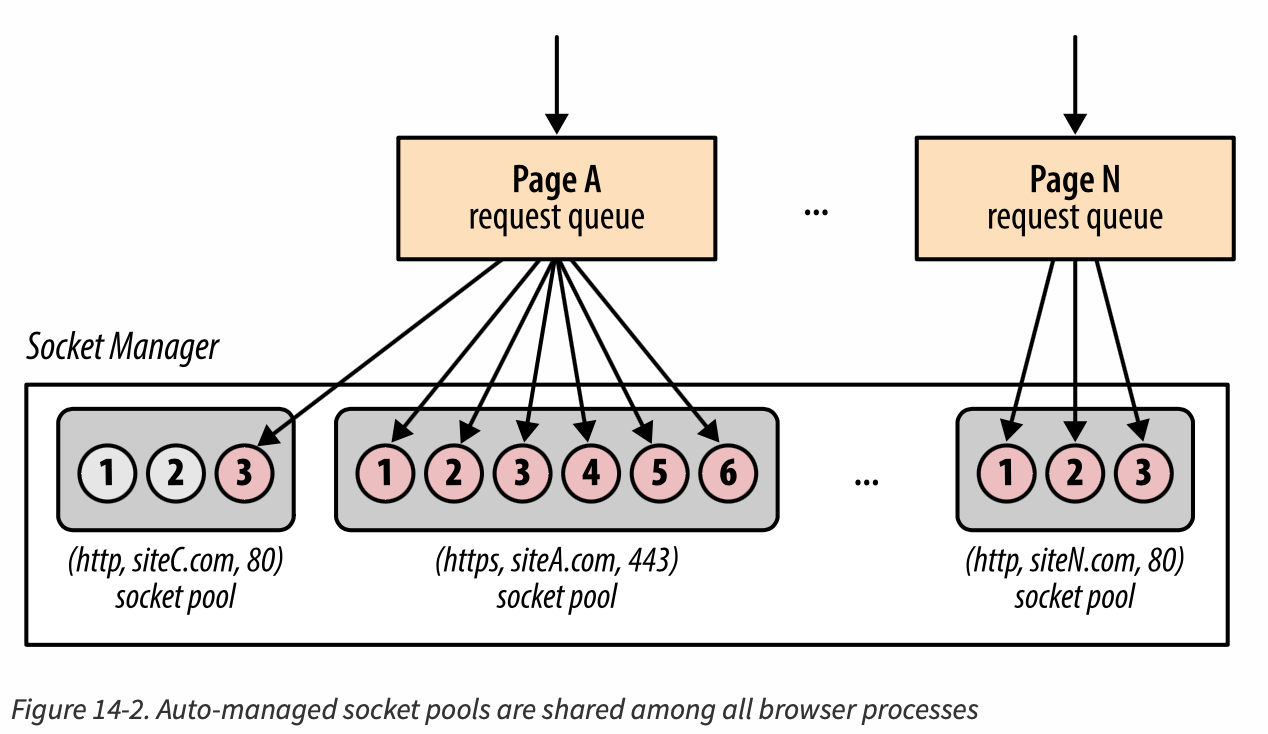 - Socket 按 origin 分池,每池限制最大连接数(通常 6),请求进入队列