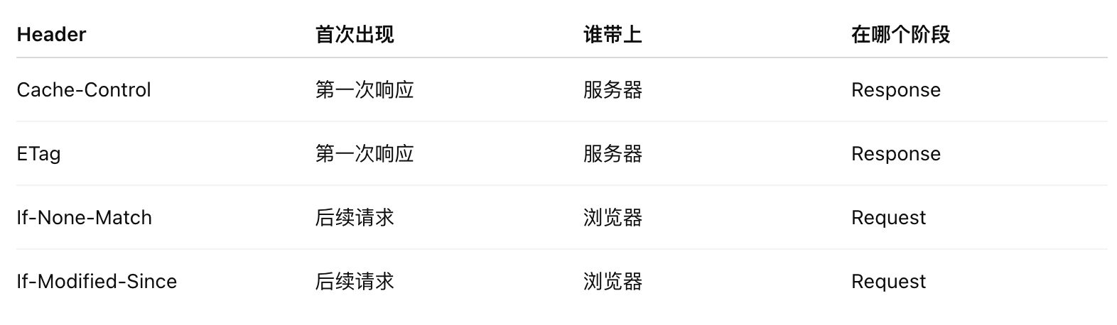 - last-modified: 可能存在精度低和时间不同步问题,现代推荐 ETag