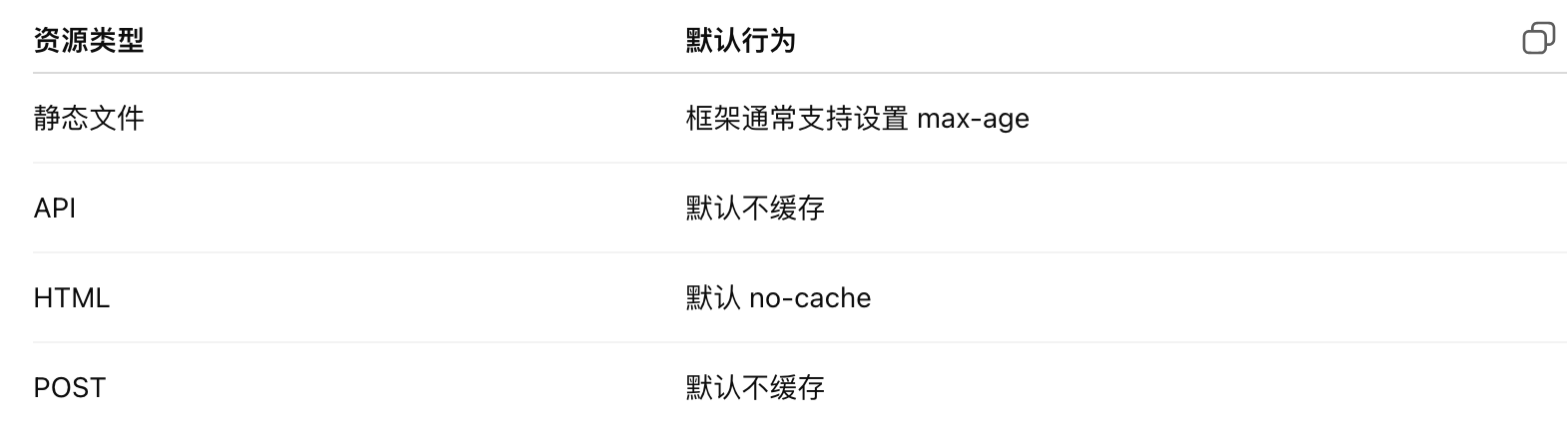 - no-cache: 每次都向服务器验证(走 revalidation)