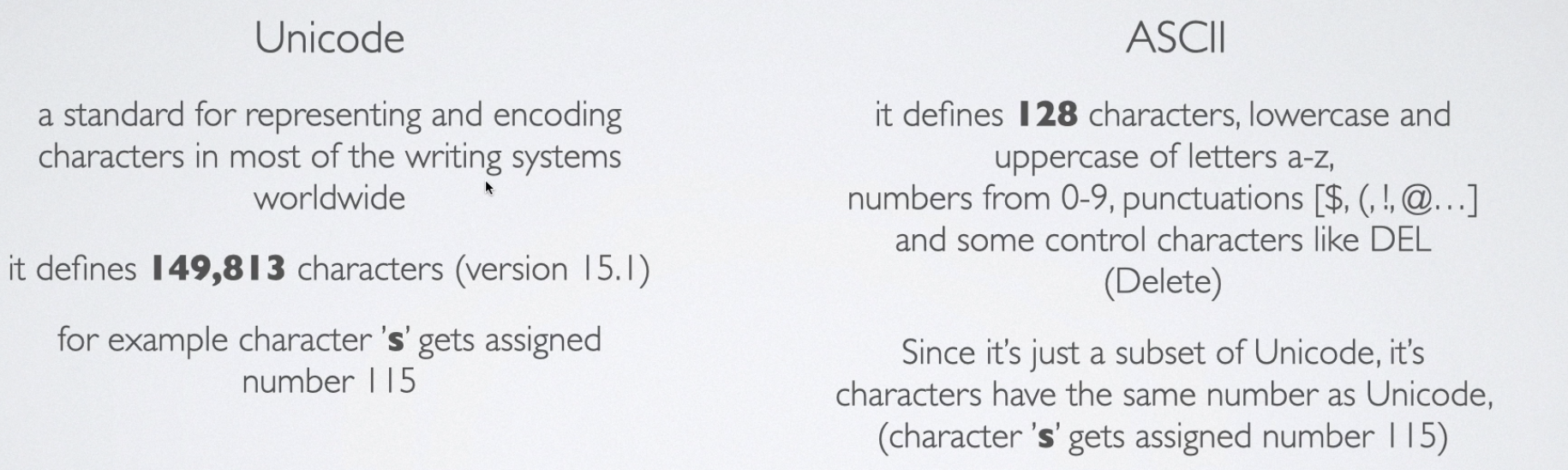 - Ascii 是 Unicode 的一个子集