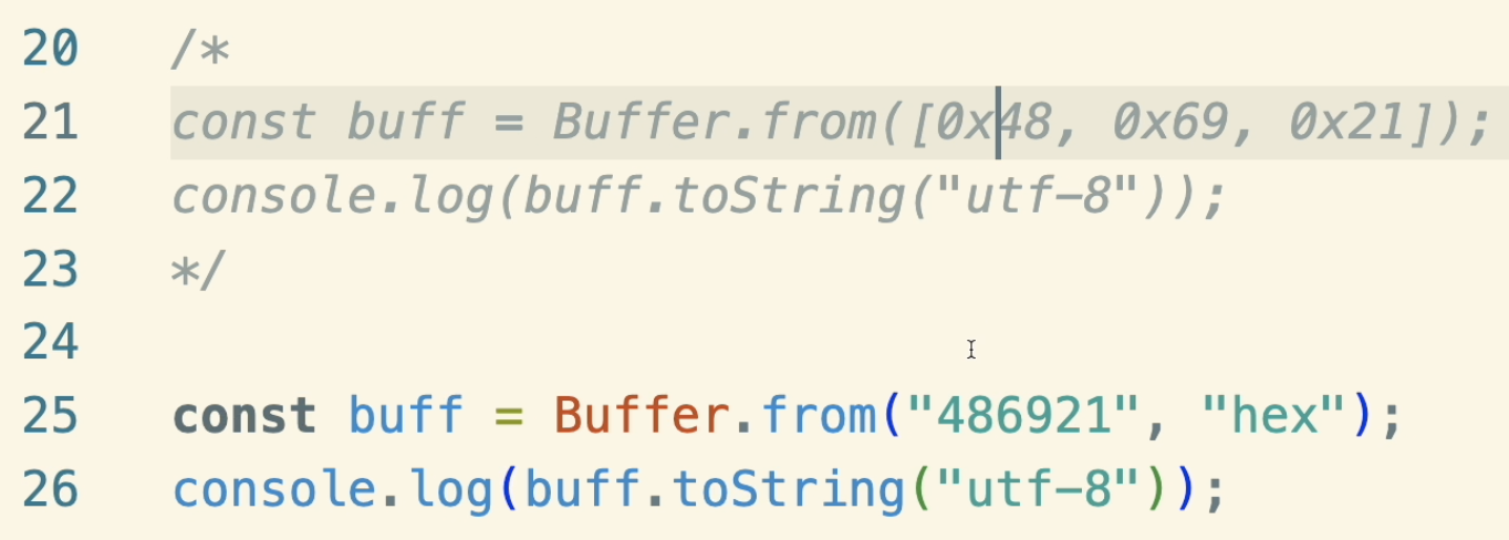 Bufferclass is a subclass of Javascript’sUnit8Array - in NodeJS each element of buffers holds exactly eight bits (1 byte).