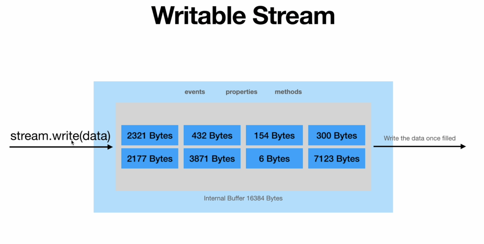 - So what you need to do is to first wait for this internal buffer to get emptied and then do another wright now, this process that the stream does to empty this buffer is called draining.